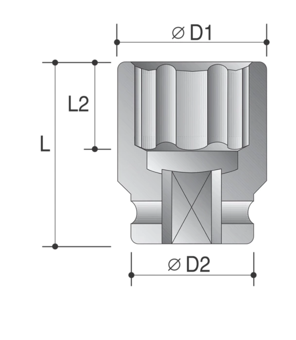 Pino de Segurança para Soquetes de Impacto Encaixe 3/8 Polegada utilizado no intervalo de medidas do diâmetro interno da base (D2) 24 a 26mm.